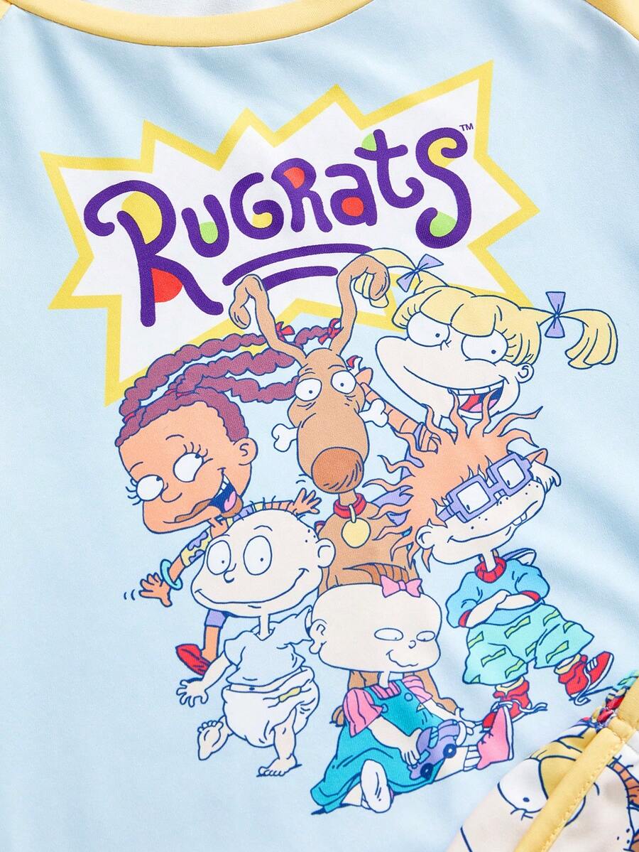 Nick 90's X ROMWE Cartoon Pattern Short Sleeve Top And Shorts Casual Pajama Set
