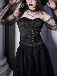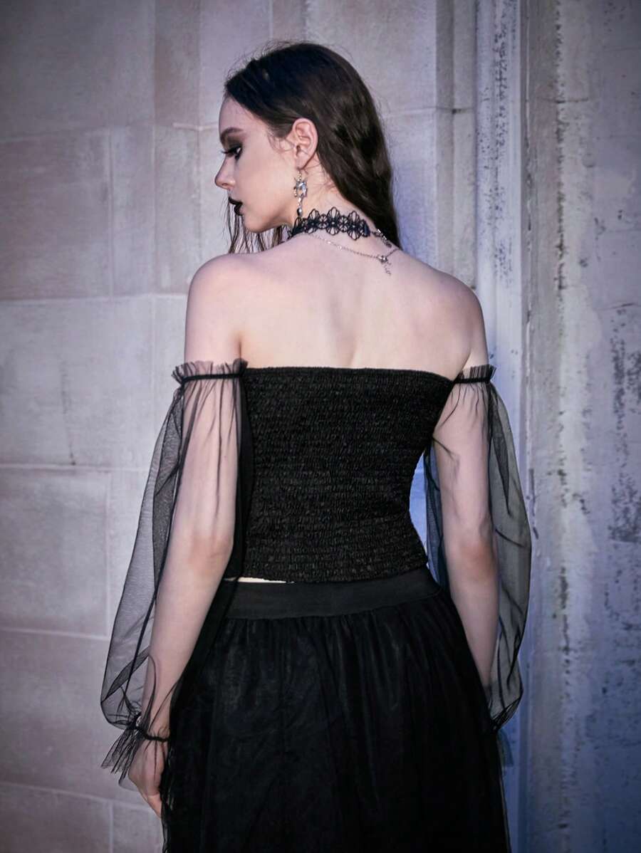 Goth Off Shoulder Hook And Eye Contrast Mesh Crop Top Gothic