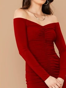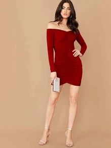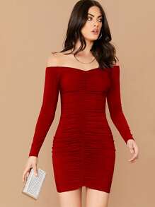Off Shoulder Ruched Detail Bodycon Dress