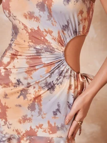 One Shoulder Cutout Ruffle Hem Tie Dye Dress