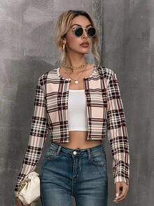 Open Front Plaid Crop Jacket