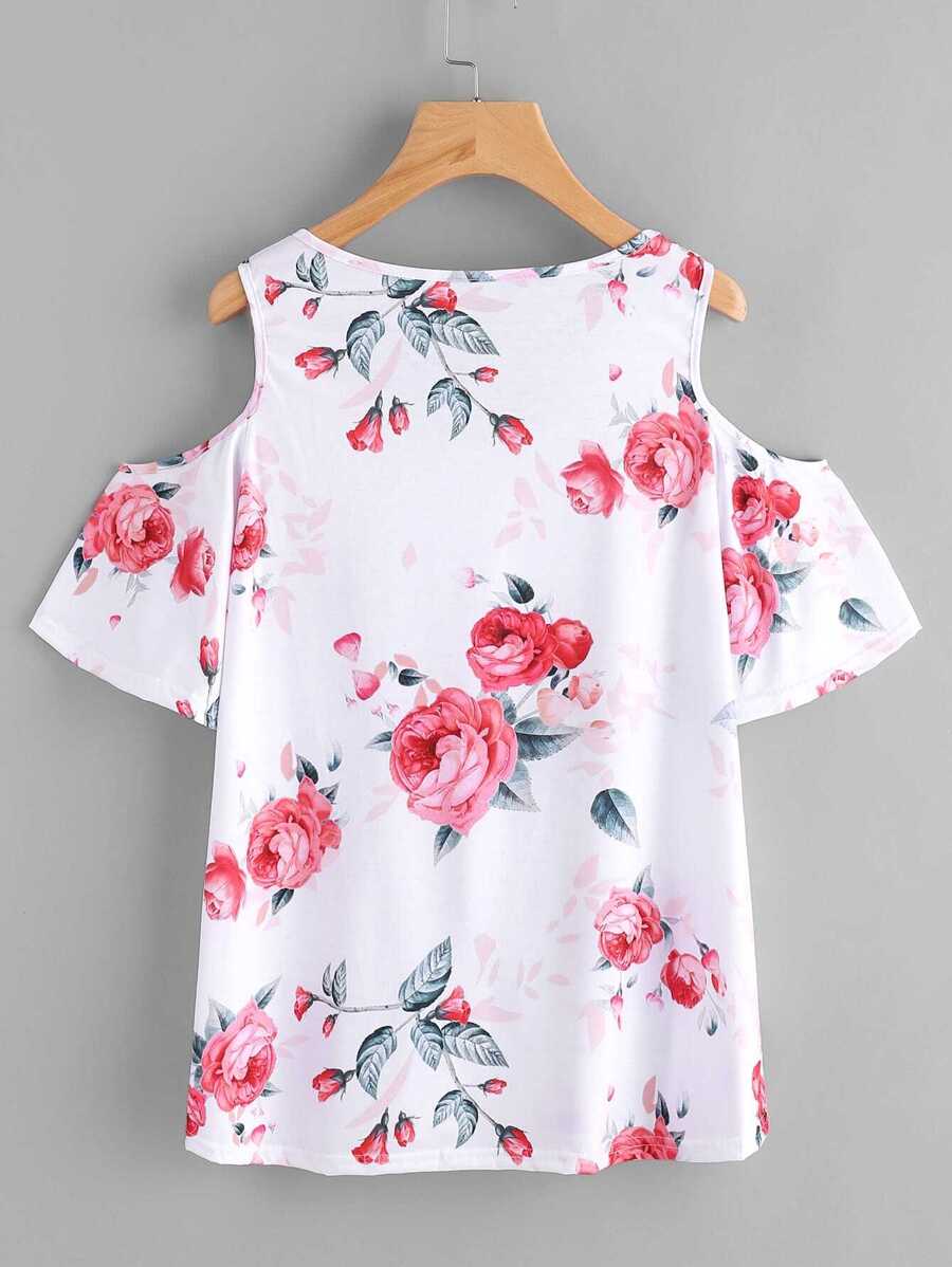 Open Shoulder Floral Print Top