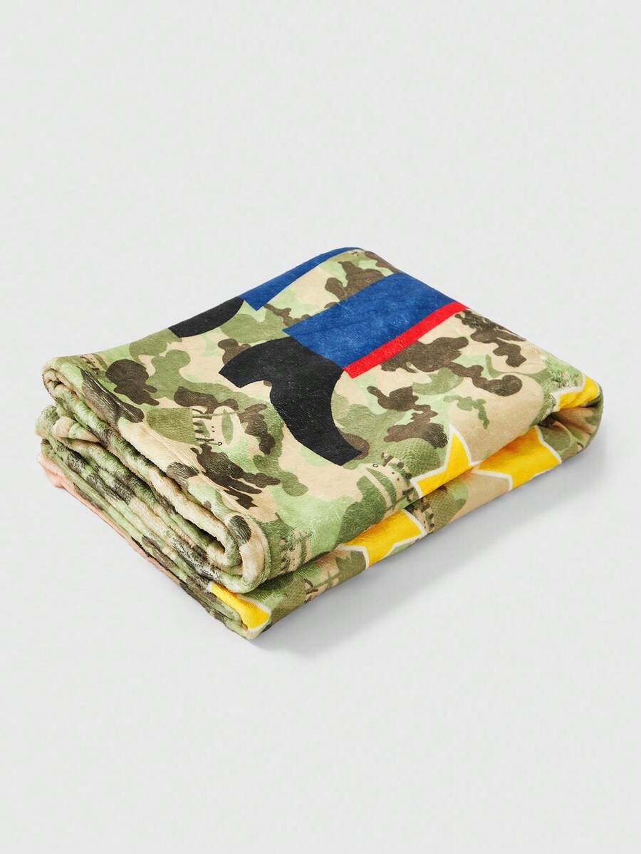 Paul Frank X ROMWE 1pc Customized Camouflage & Cartoon Letter Printed Sofa Blanket, Throw Blanket & Nap Blanket, Thickened Nap Air Conditioning Blanket