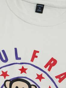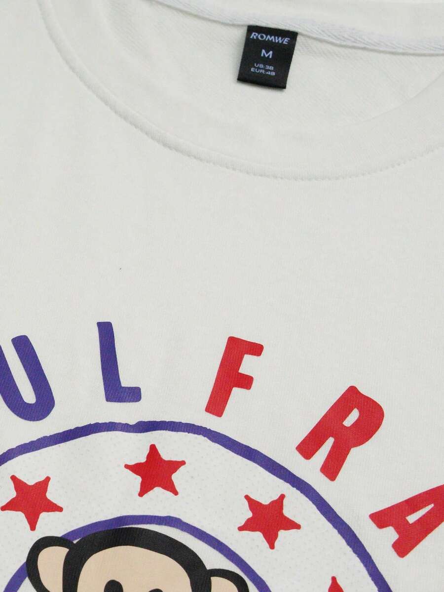 Paul Frank X ROMWE Men's Letter & Monkey Print Round Neck Short Sleeve T-Shirt, Summer