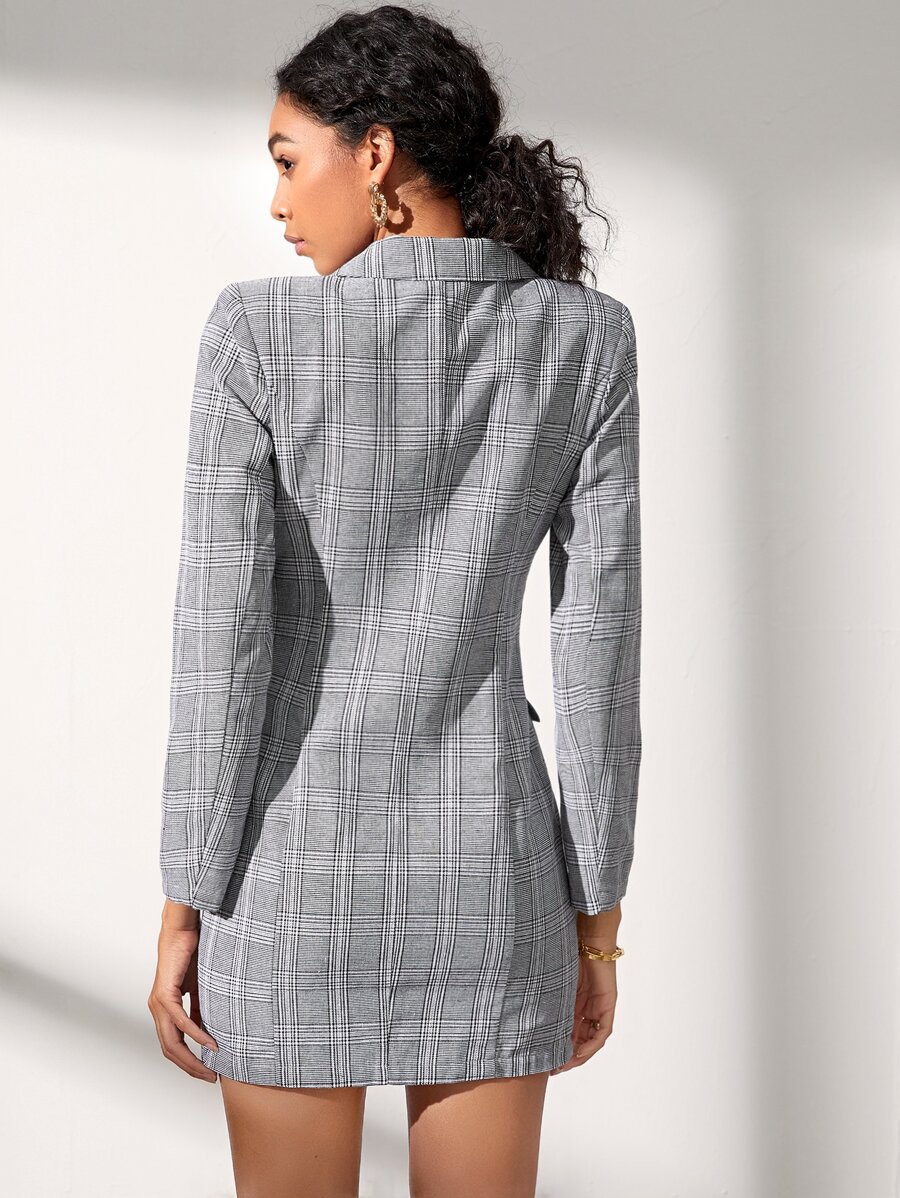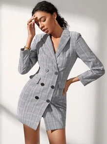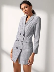 Peak Collar Double Breasted Plaid Blazer Dress