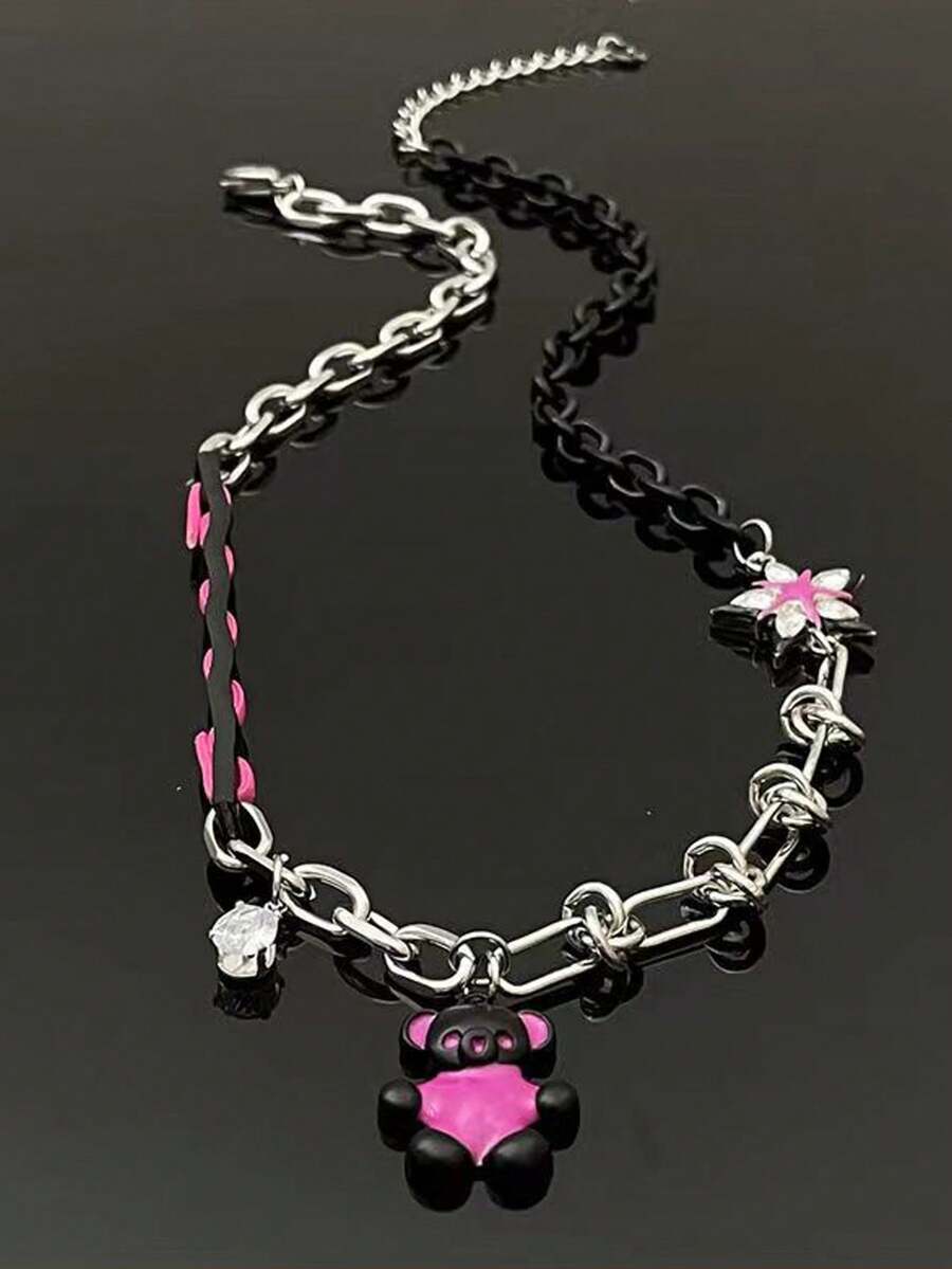 Kawaii Pink Teddy Bear Pendant Chain Necklace