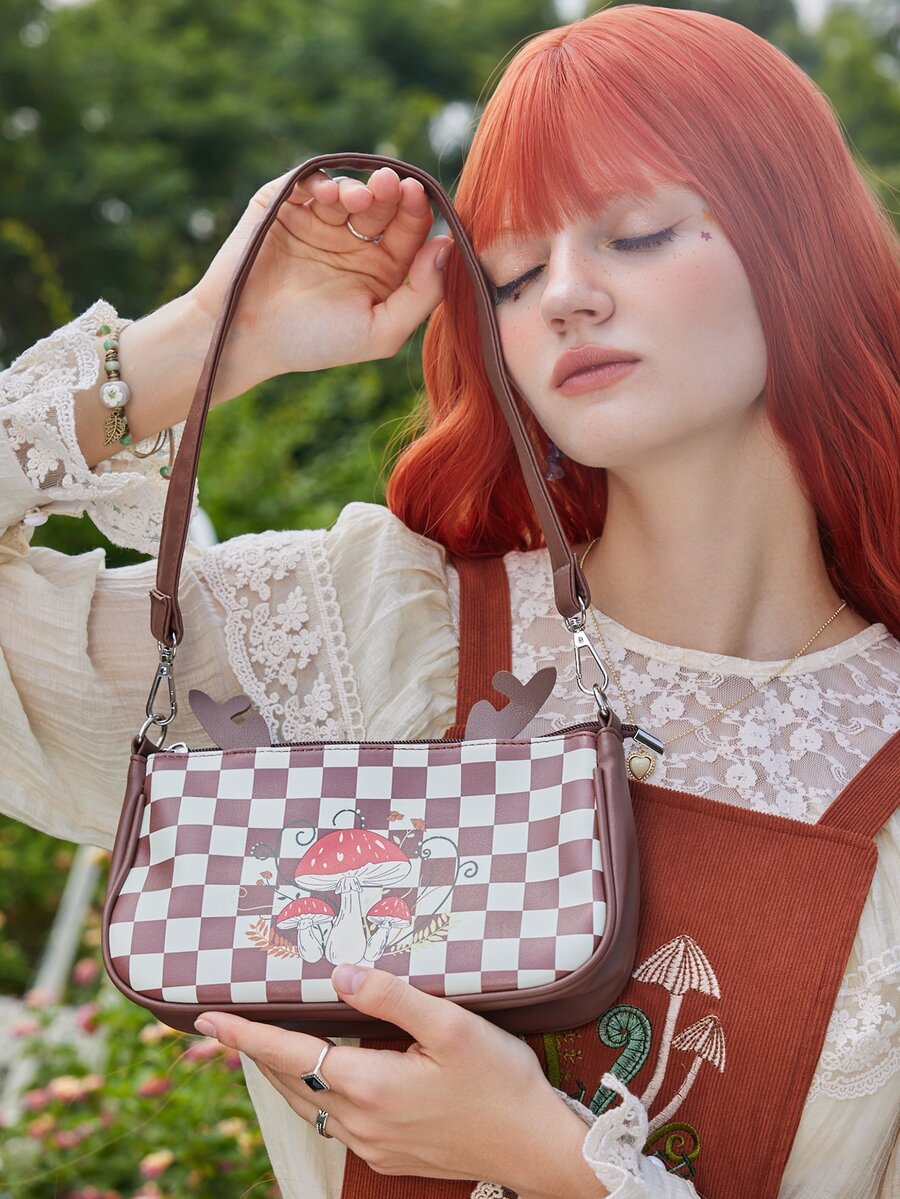 Fairycore Plaid & Plant Print Bag