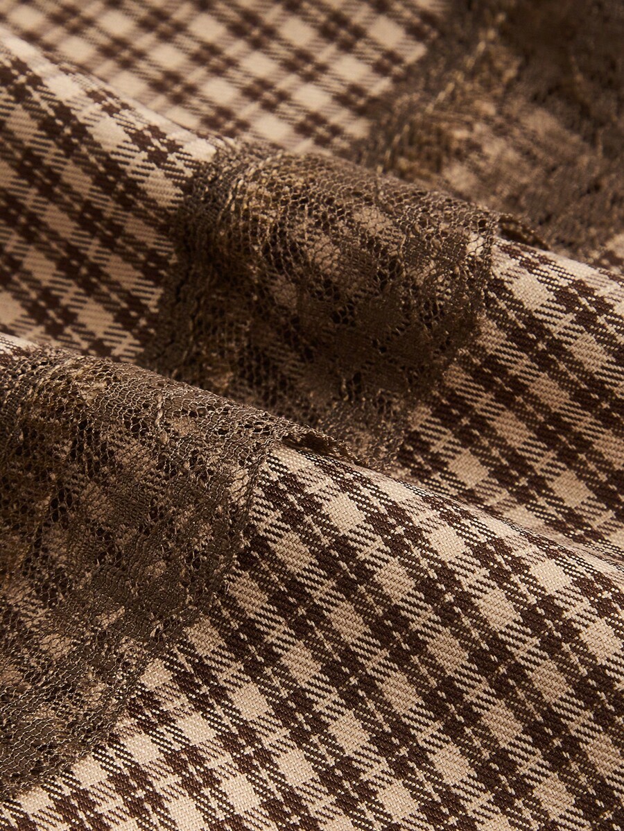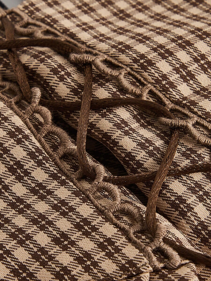 Plaid Contrast Lace Lace Up Skirt