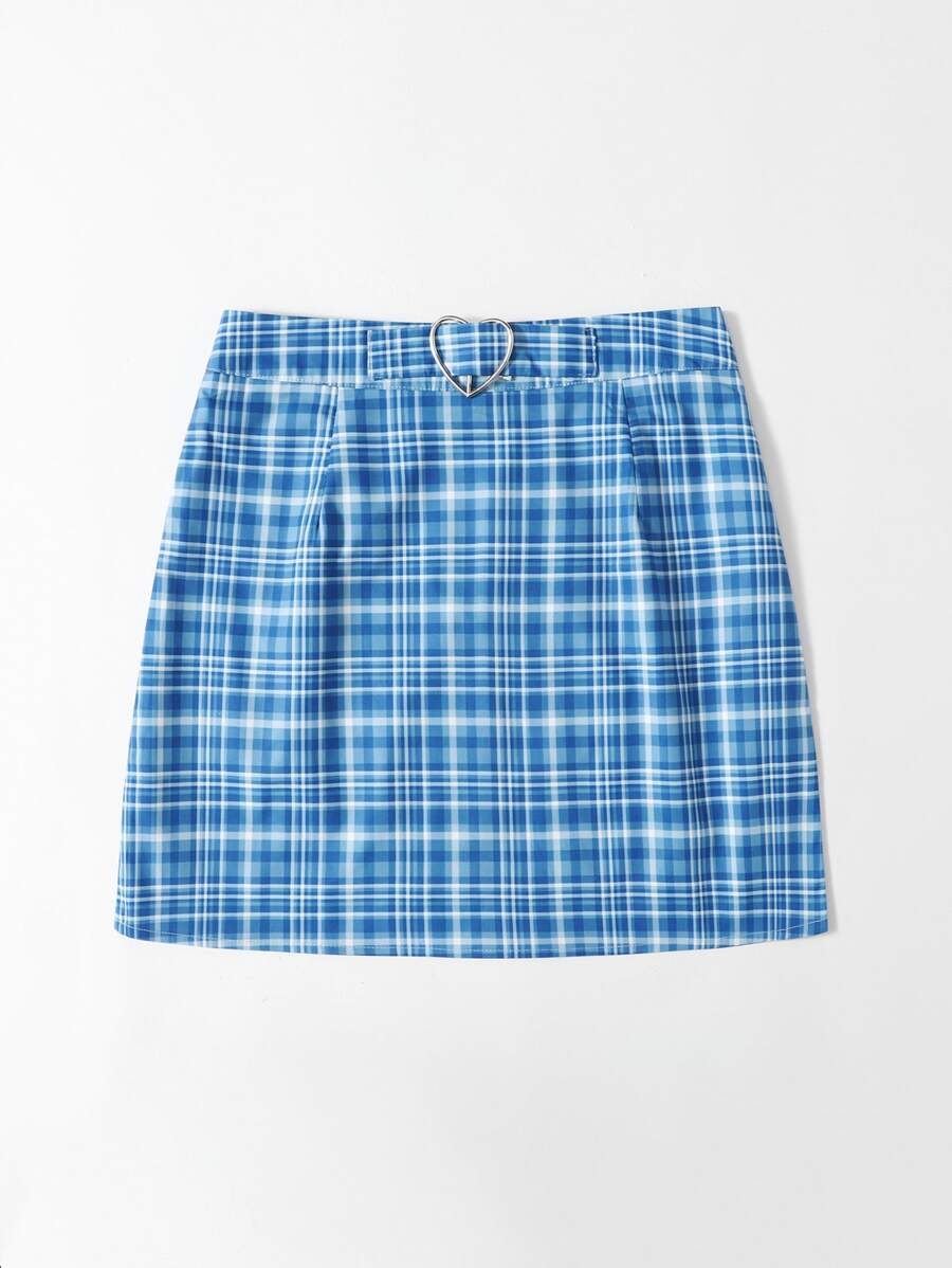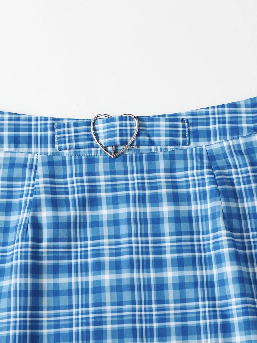 Plaid Heart-buckle Skirt
