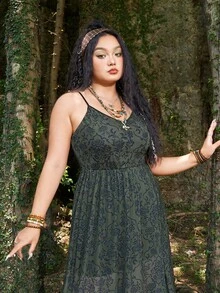 Hippie Plus Allover Print Split Thigh Cami Dress Without Belt