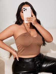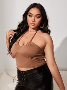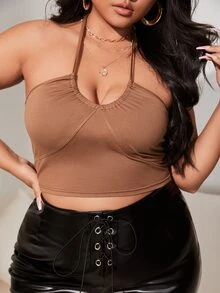 Plus Backless Crop Halter Top