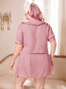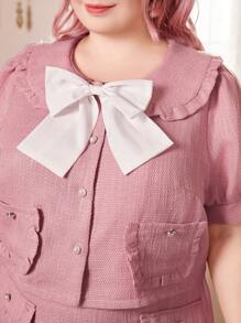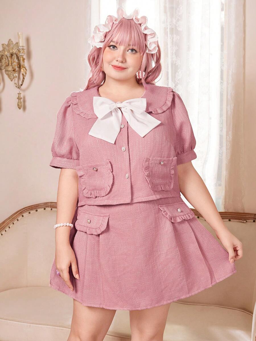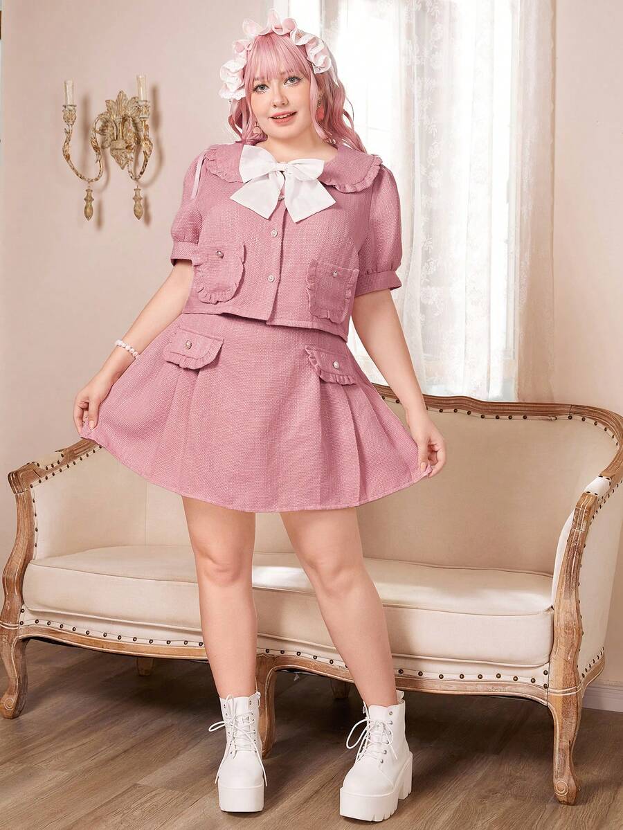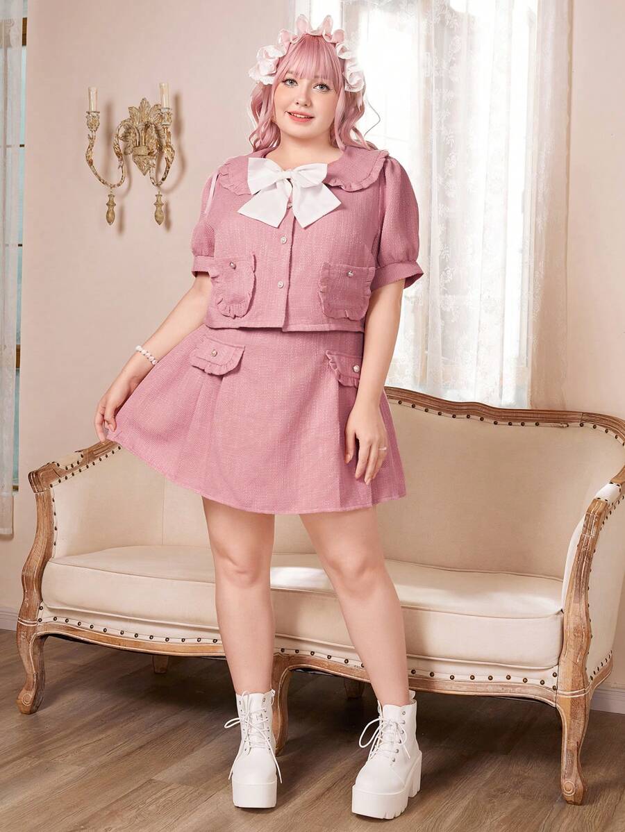 Kawaii Plus Bow Front Puff Sleeve Jacket & Skirt