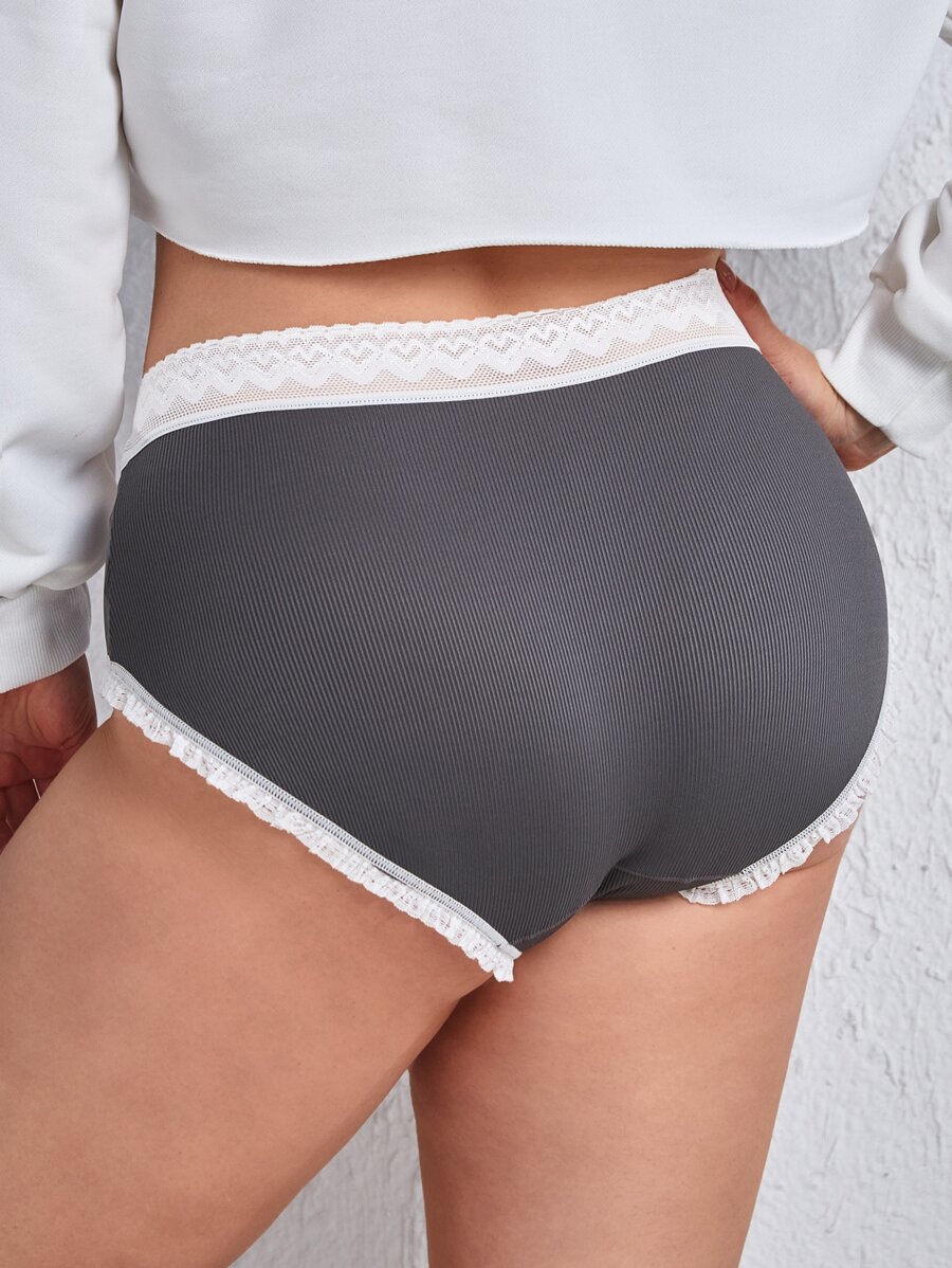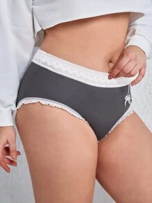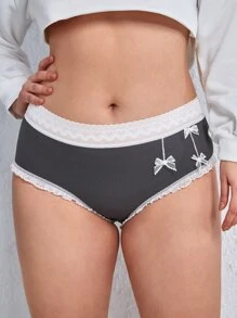 Plus Bow Print Lace Trim Panty