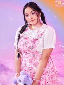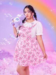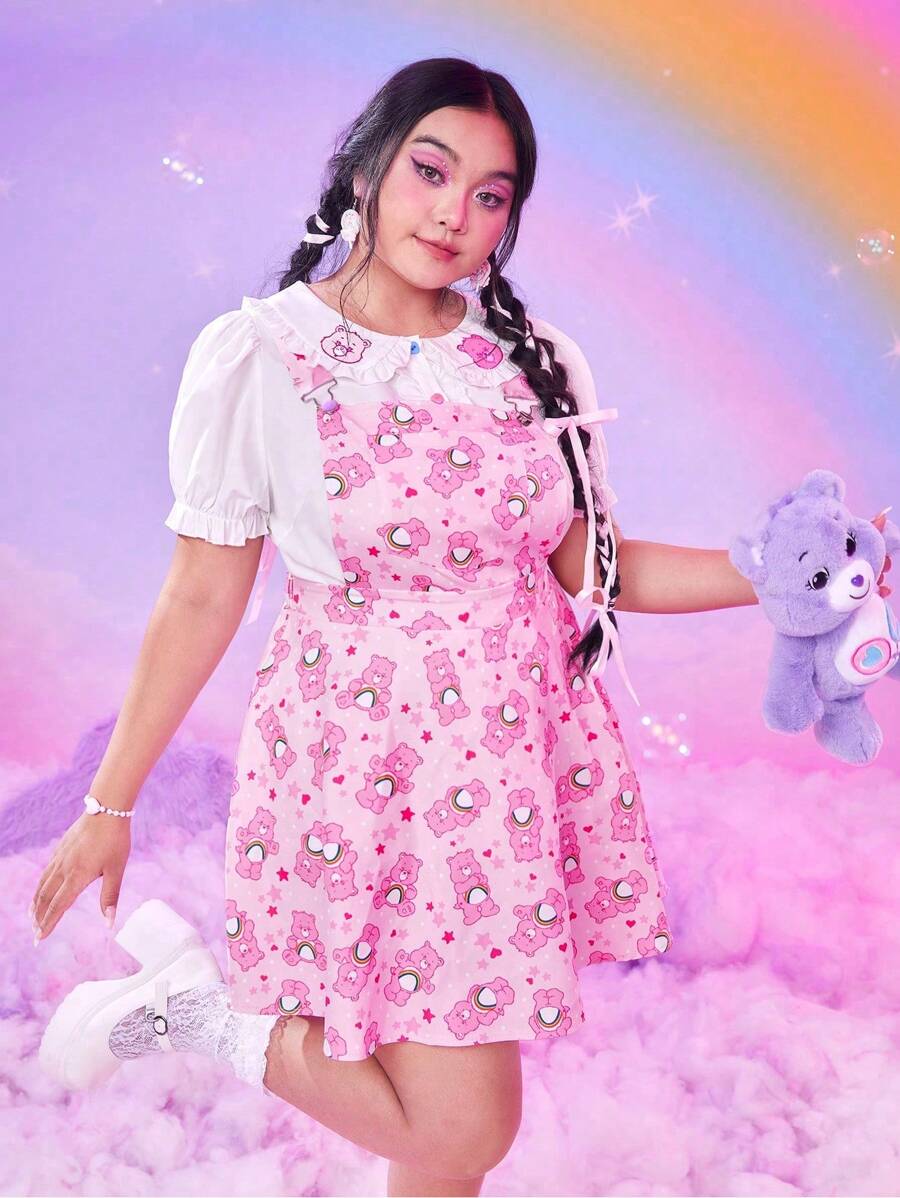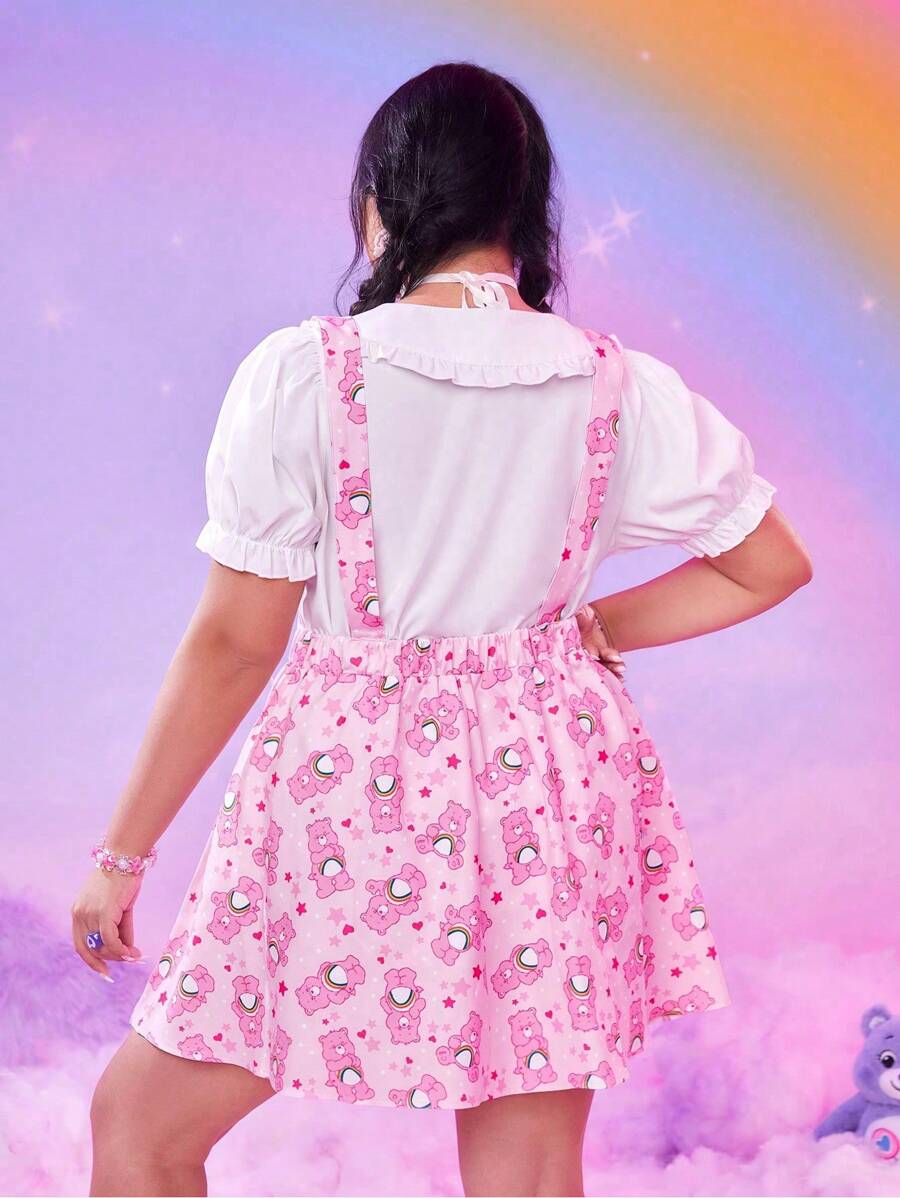ROMWE X Care Bears Plus Cartoon Graphic Overall Dress Without Top