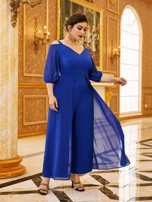 Plus Cold Shoulder Jumpsuit With Skirt