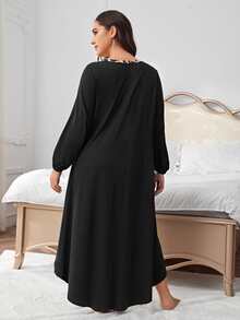 Plus Contrast Leopard Pocket Lantern Sleeve High Low Hem Night Dress