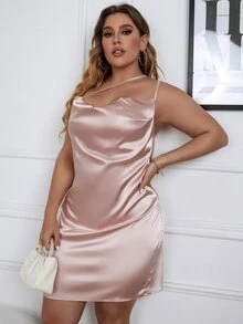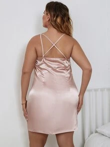 Plus Criss Cross Cowl Neck Satin Cami Dress