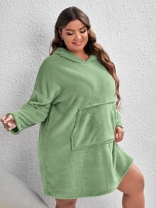 Plus Drop Shoulder Kangaroo Pocket Hooded Flannelette Night Dress