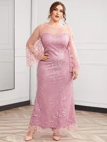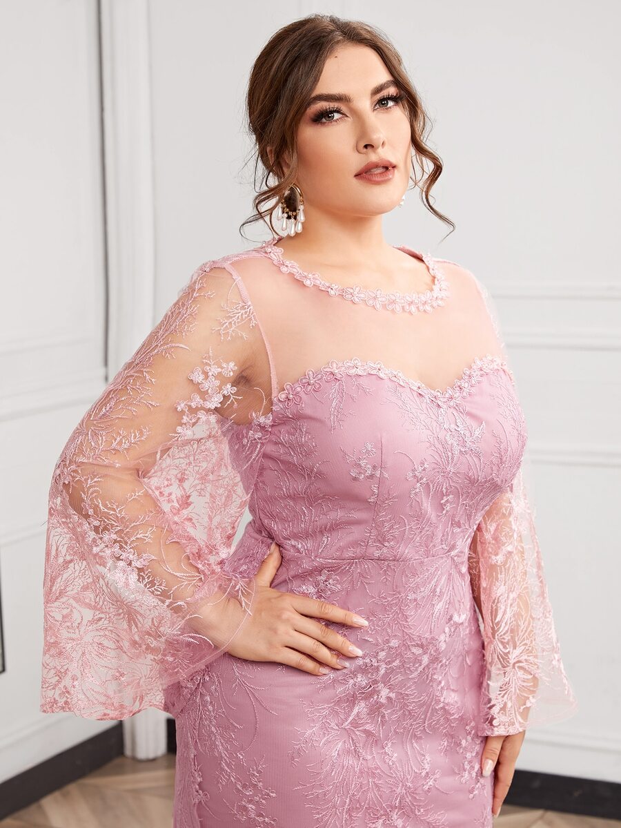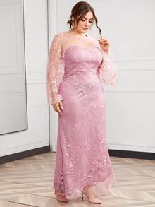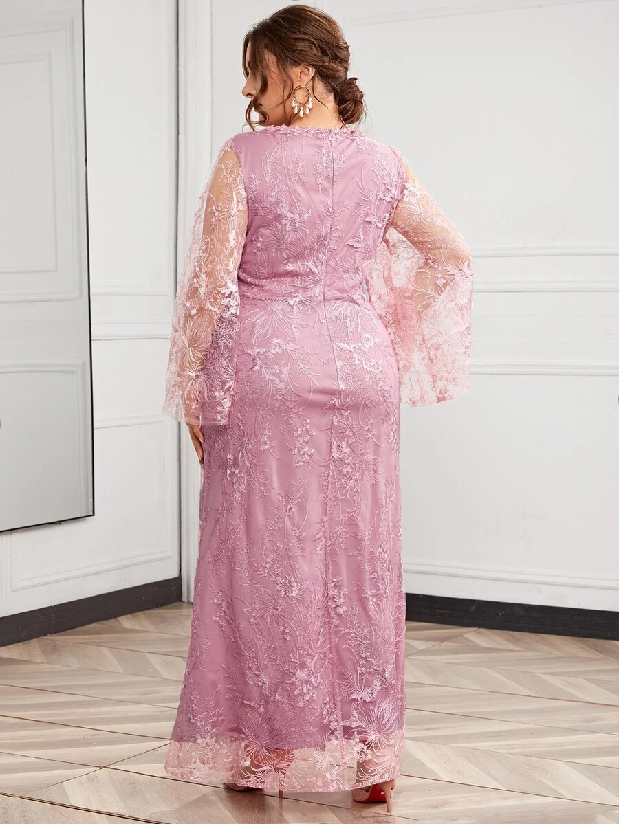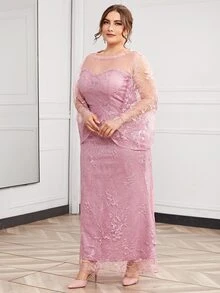 Plus Floral Embroidered Mesh Fitted Dress