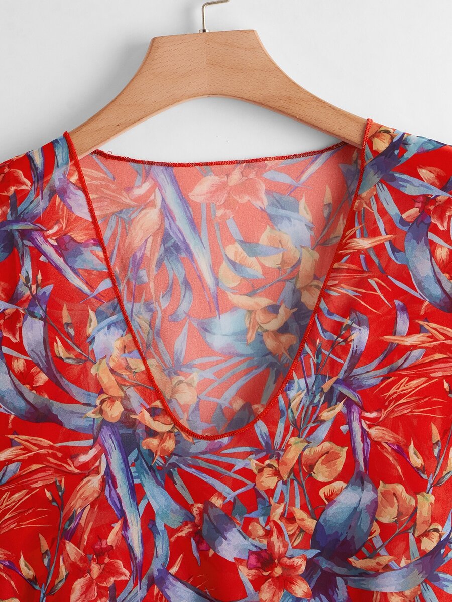Plus Floral Print Mesh Cover Up, For Summer Beach Vacation