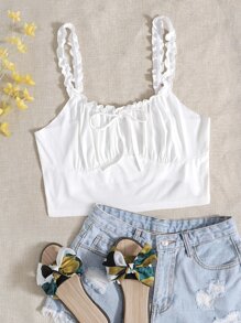 Plus Frill Trim Tie Front Ruched Bust Crop Top
