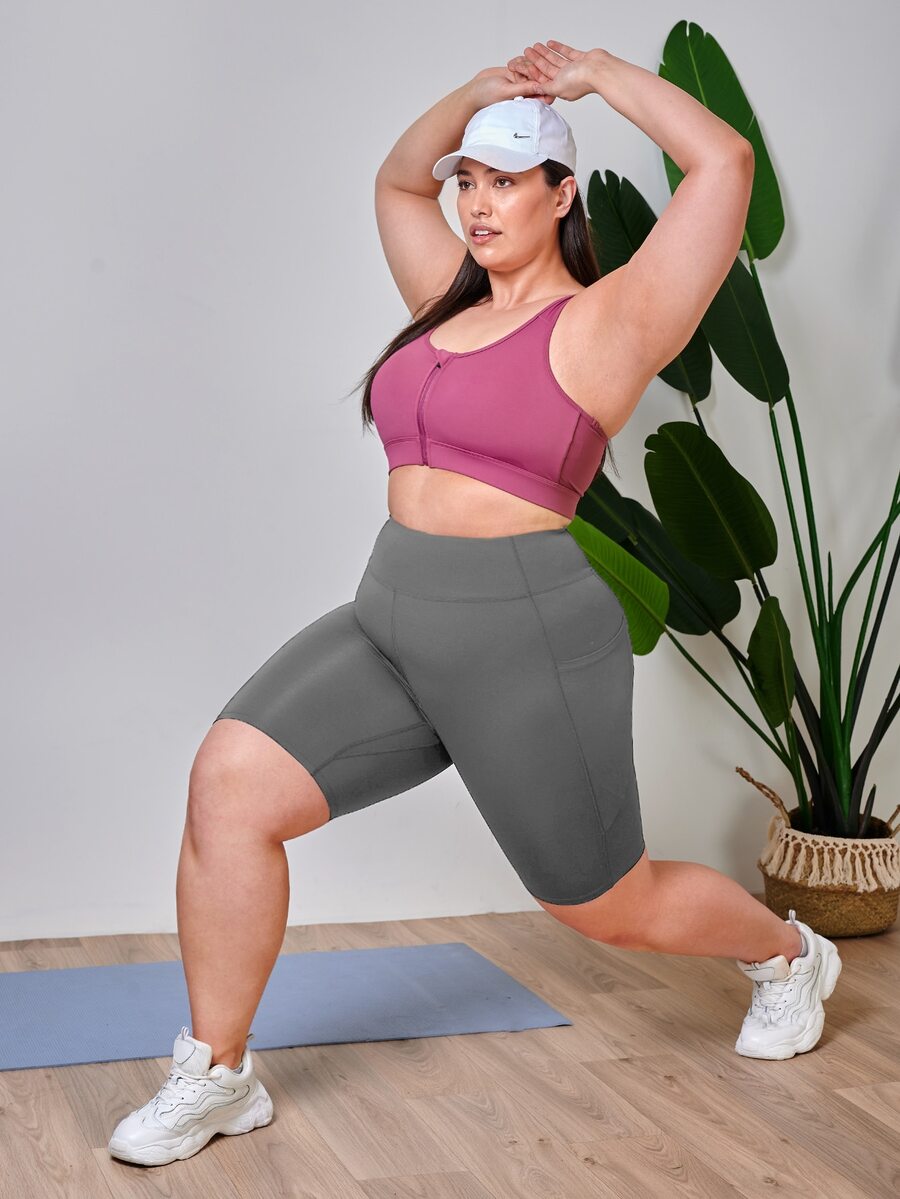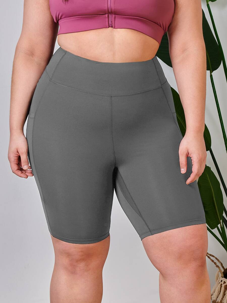 Plus High Stretch Biker Shorts With Phone Pocket