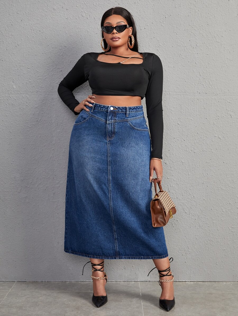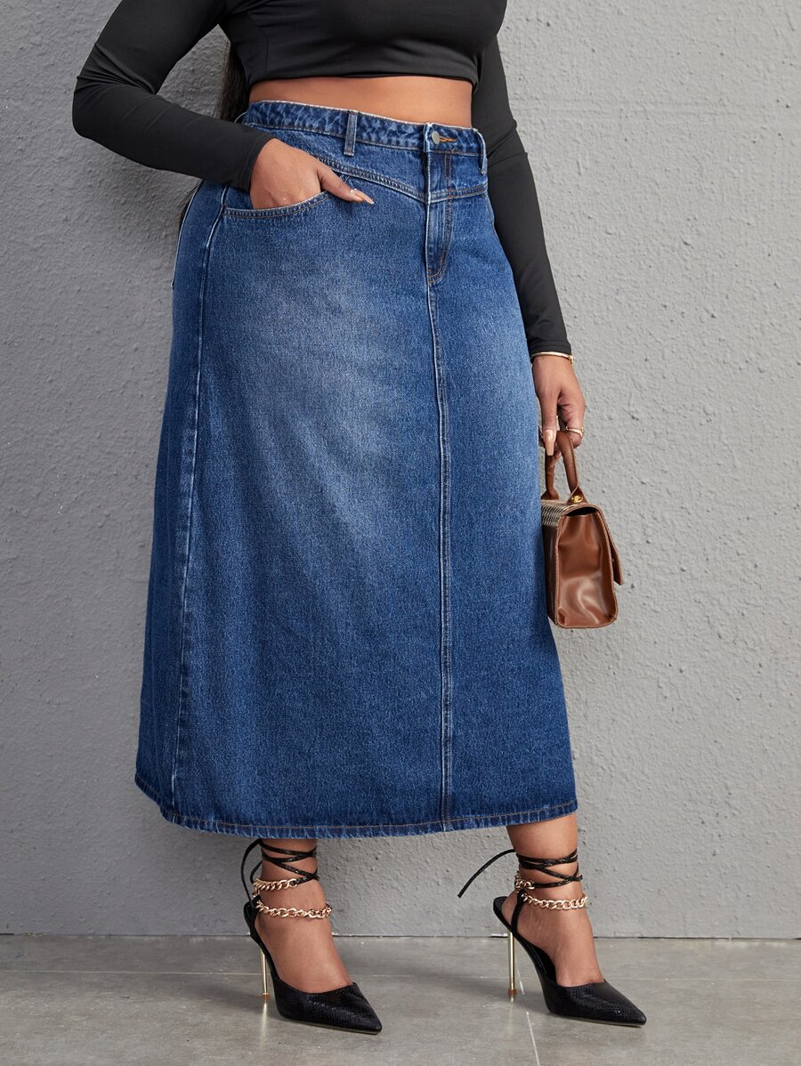 Plus High Waist Denim Skirt