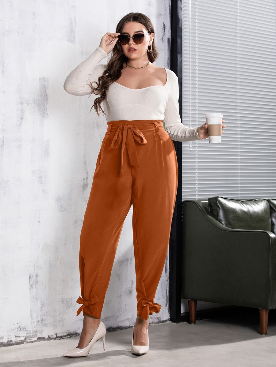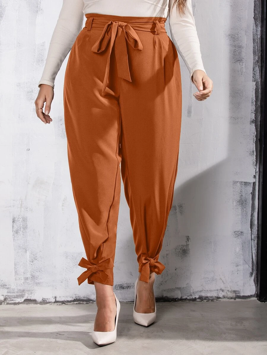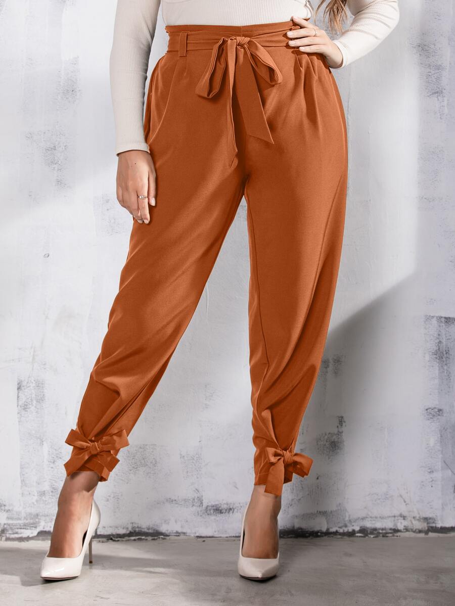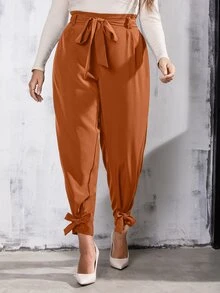 Plus Knot Detail Belted Pants