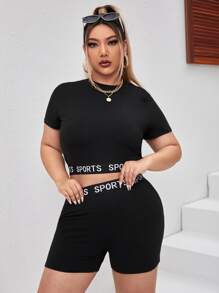 Plus Letter Graphic Tape Detail Crop Tee & Biker Shorts