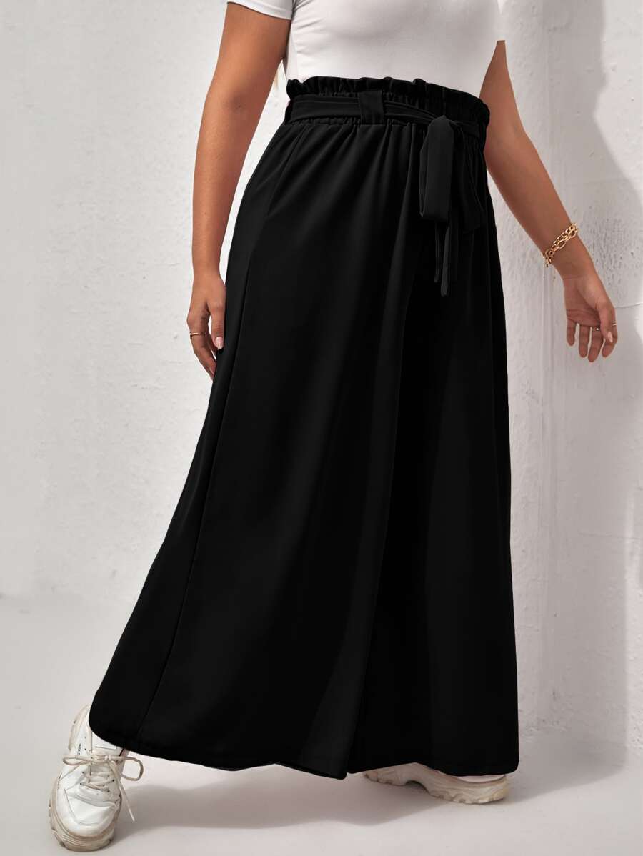Plus Paperbag Waist Tie Front Wide Leg Pants