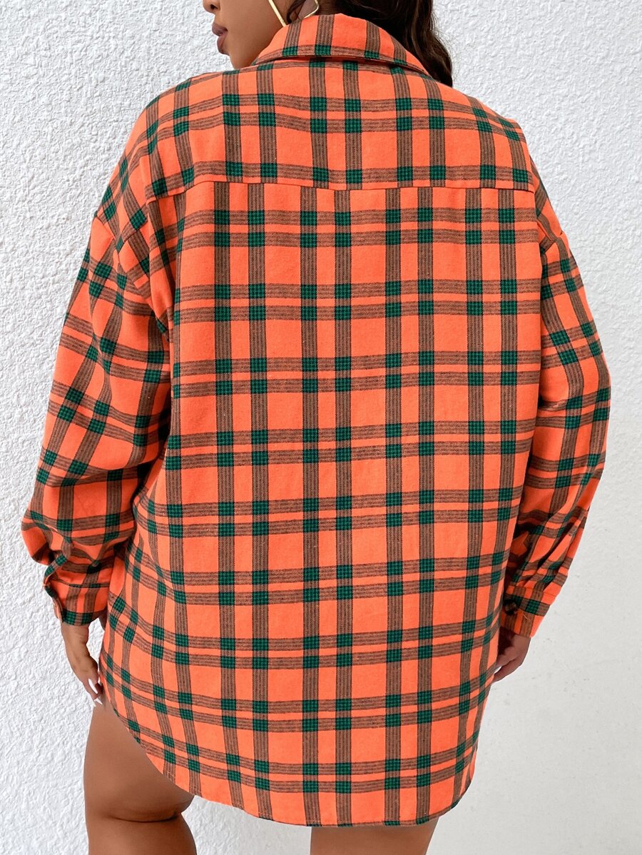 Plus Plaid Print Drop Shoulder Shirt Fall Cloth For Women