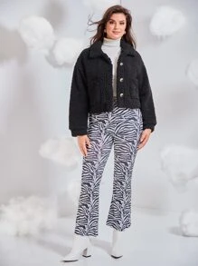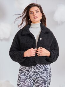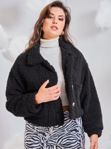 Plus Pocket Front Drop Shoulder Fleece Jacket