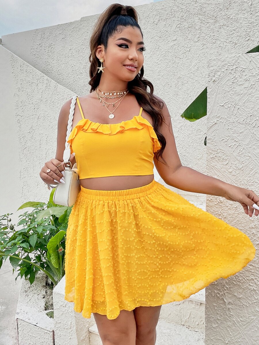 Plus Ruffle Trim Cami Top & Swiss Dot Skirt