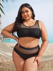 Plus Size Contrast Fishnet Bikini Set Summer Beach
