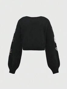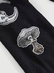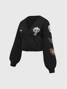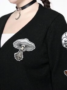 Hippie Plus Size Dark Hippie Embroidered Mysterious Occult Eye Sun Moon Star Skull Knit Cardigan