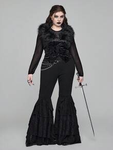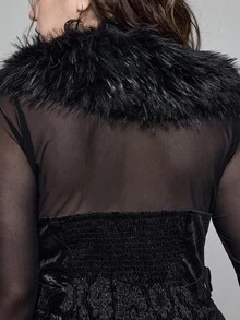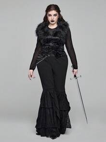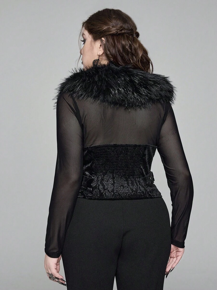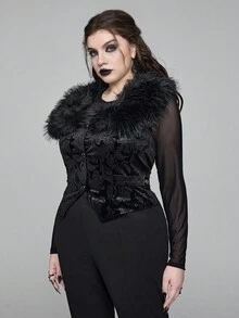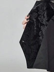 EDITION Plus Size Goth Mysterious Velvet Print Detachable Faux Fur Collar Vest