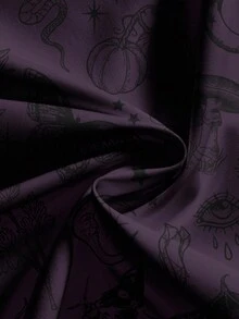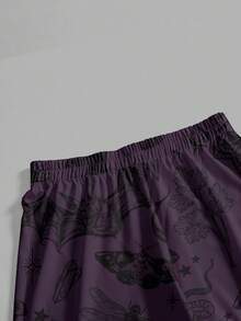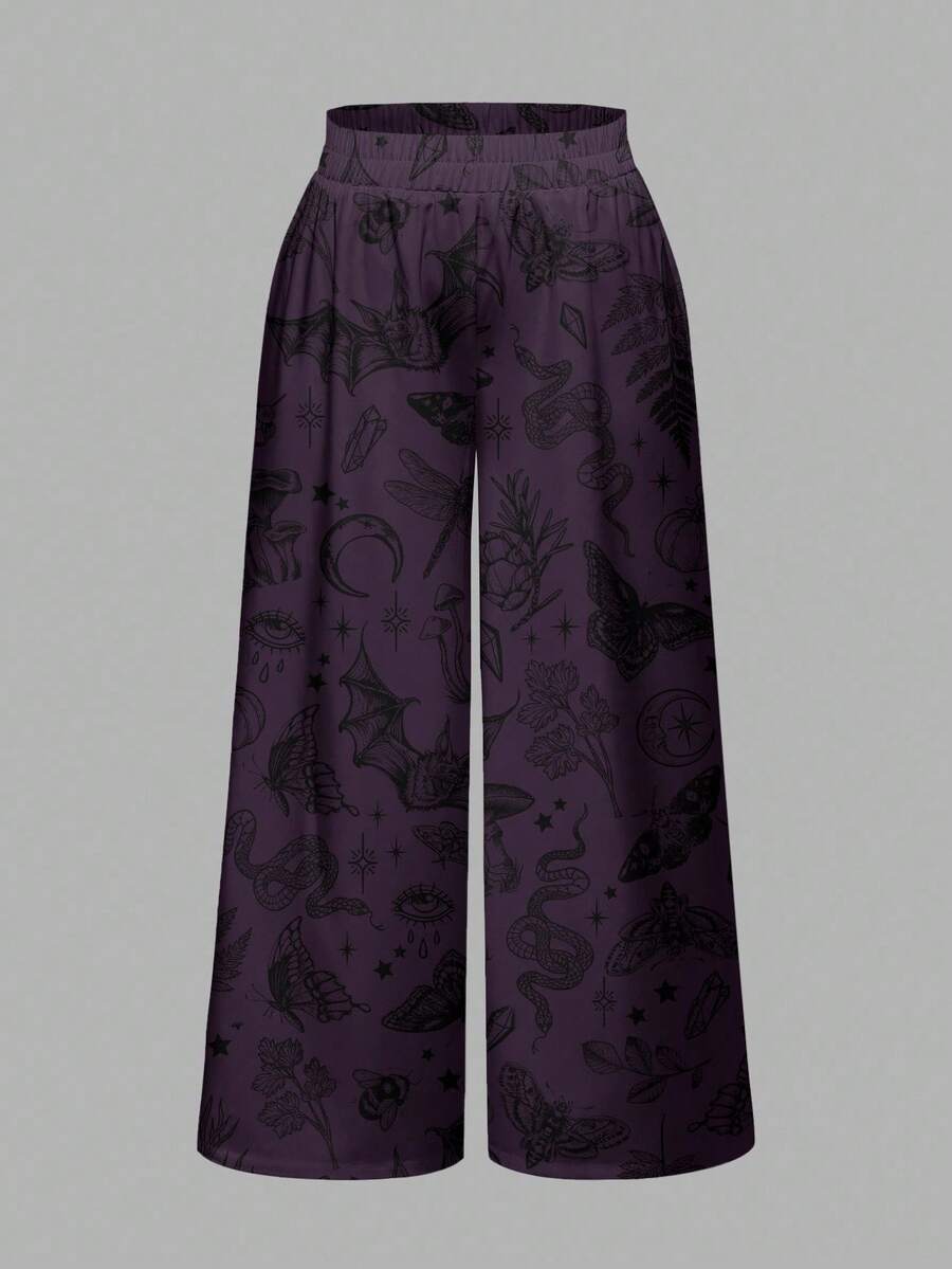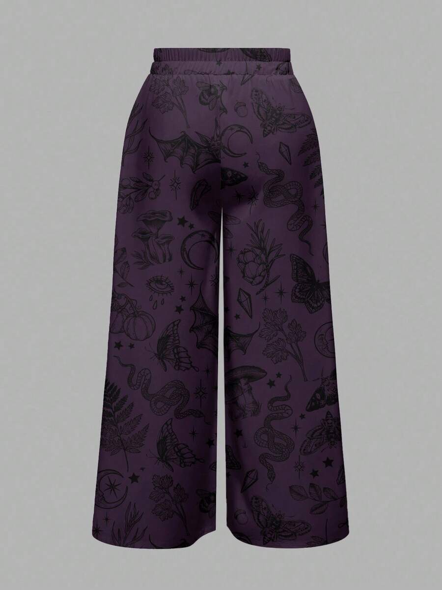 Goth Plus Size Gothic Dark Halloween Forest Bat Skull Mushroom Sun Moon Star Dragonfly Gem Plant Snake Print Loose Wide Leg Pants