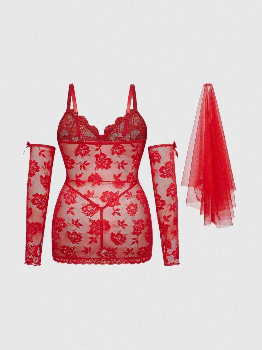 ROMWE Avant Plus Size Halloween Cosplay Lace Patchwork Lingerie Set