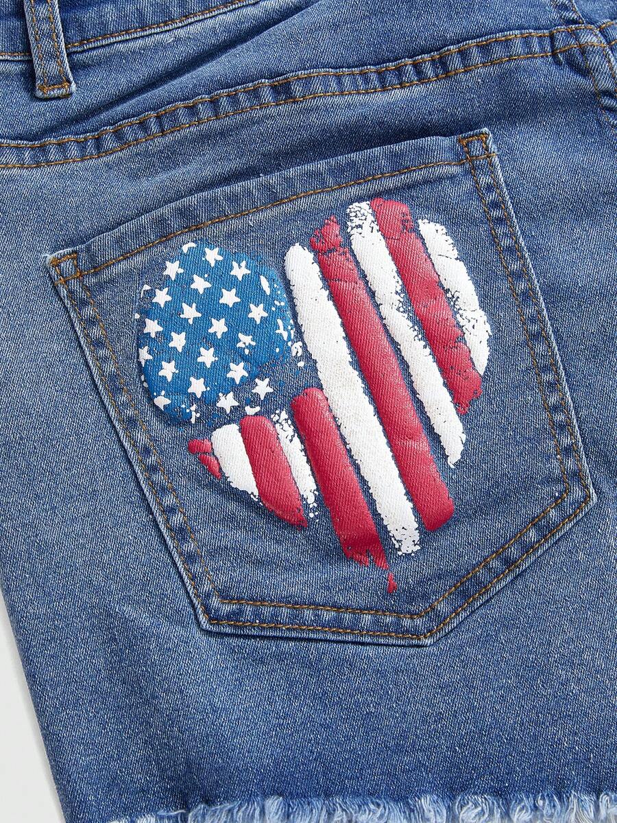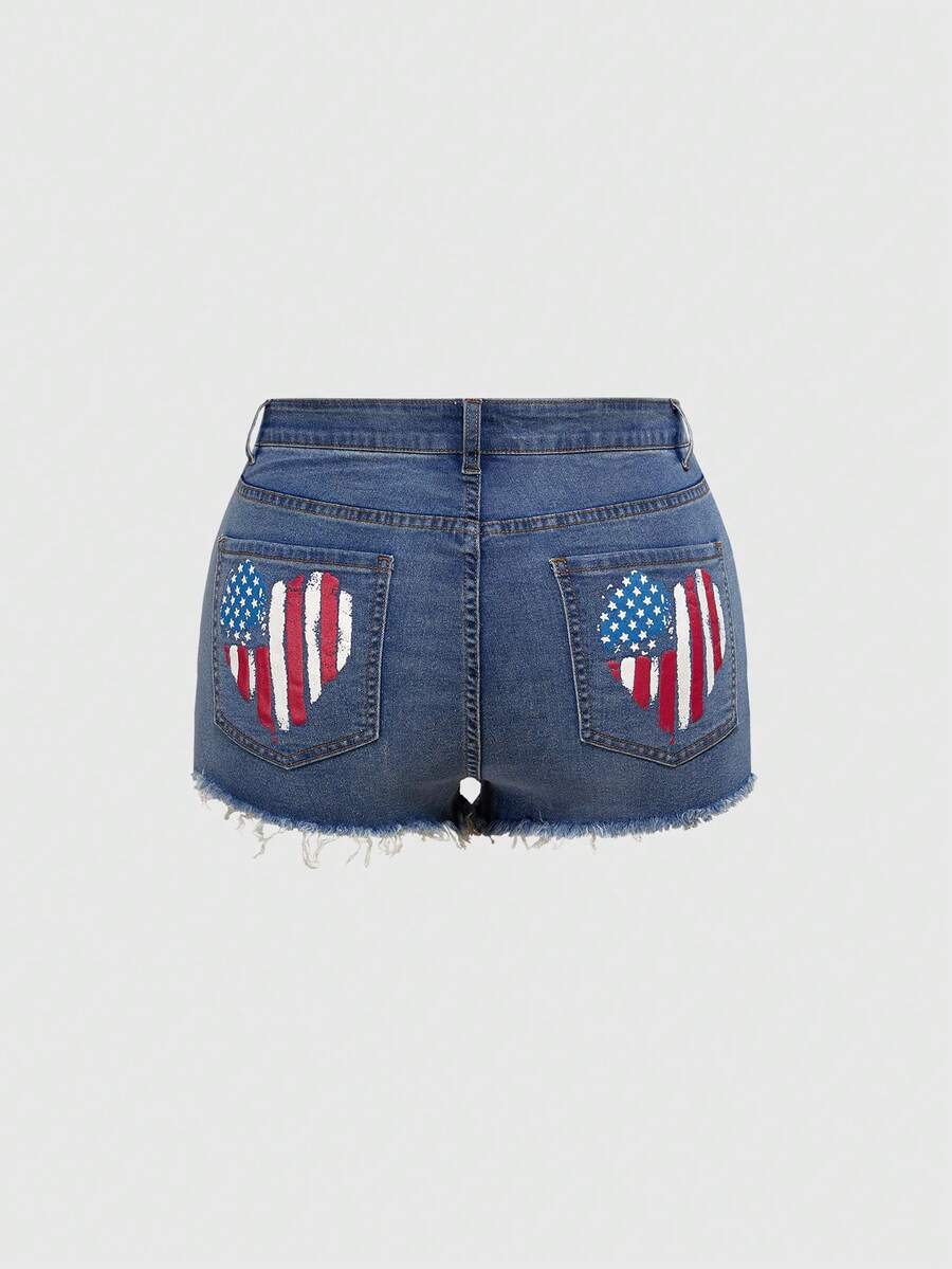 Plus Size Independence Day American Flag Print Denim Shorts,4th Of July