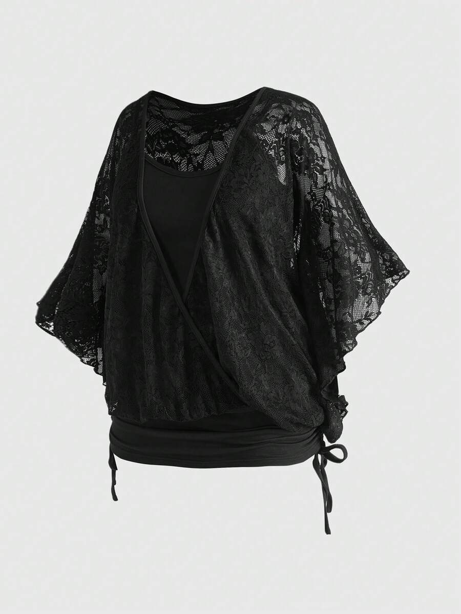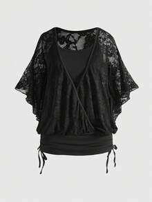Goth Plus Size Lace Trim Ruffle Hem Mini Dress