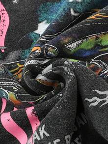 Plus Size Men's Letter & Car Print Washed Loose Fit Hoodie Sweatshirt