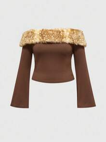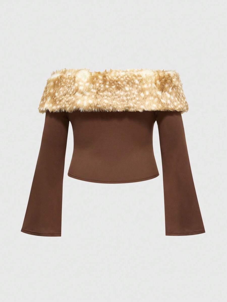 J-Fashion Plus Size Vintage Leopard Print Faux Fur Collar Patchwork Y2K Flare Sleeve Blouse For Women