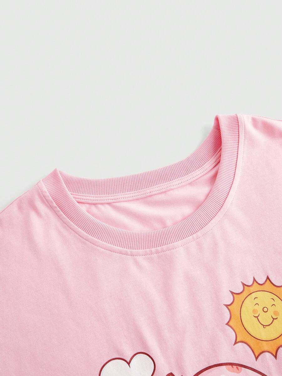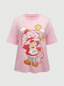 Plus Size Women Casual Cartoon Print Drop Shoulder T-Shirt, Summer