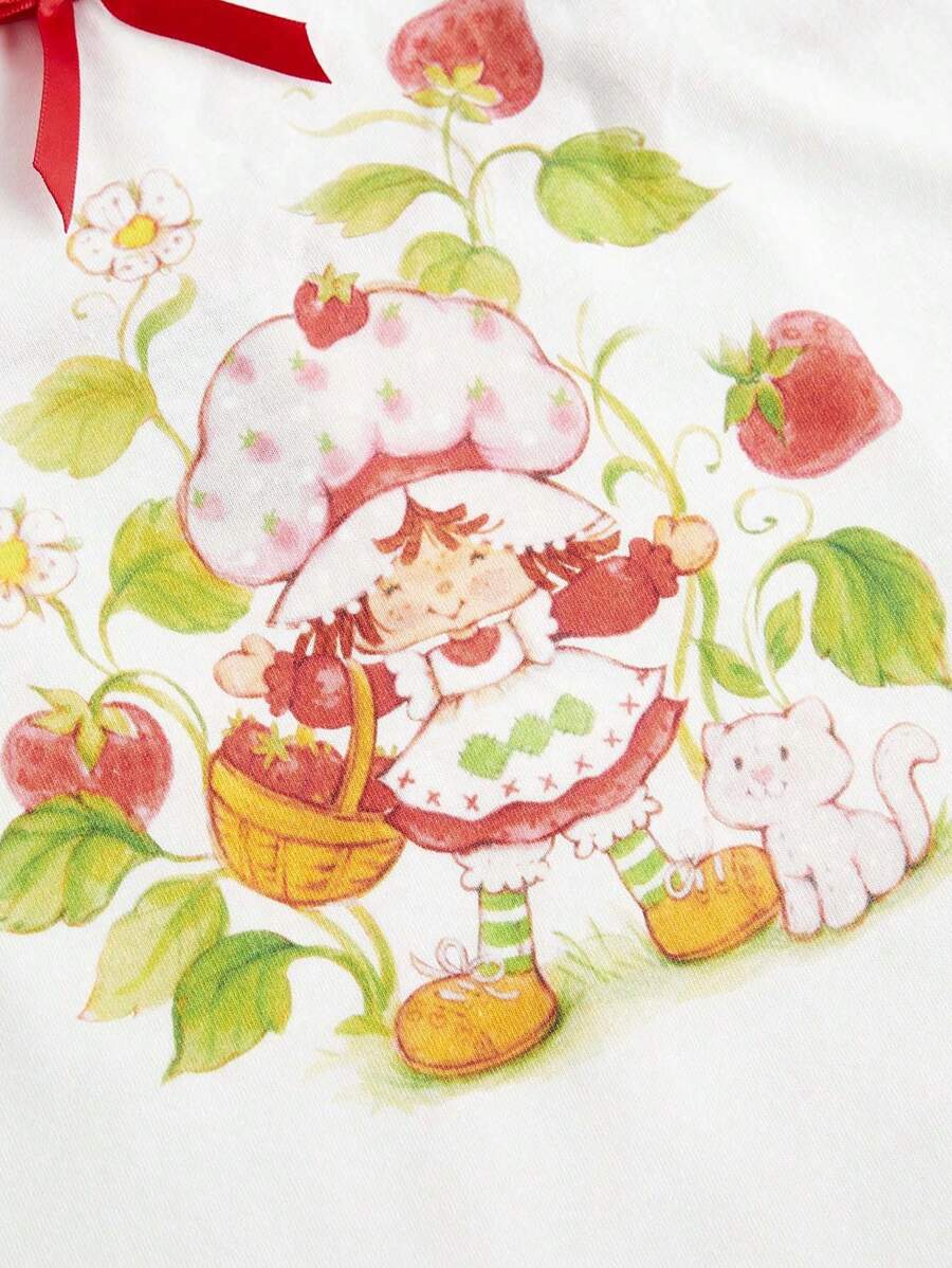 Plus Size Women Casual Cute Strawberry Girl Print Ringer Slim Fit Camisole Top, Summer