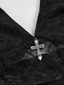 Plus Size Women Gothic Cross Decor Lace Camisole