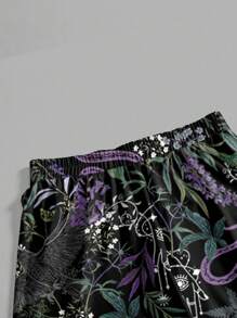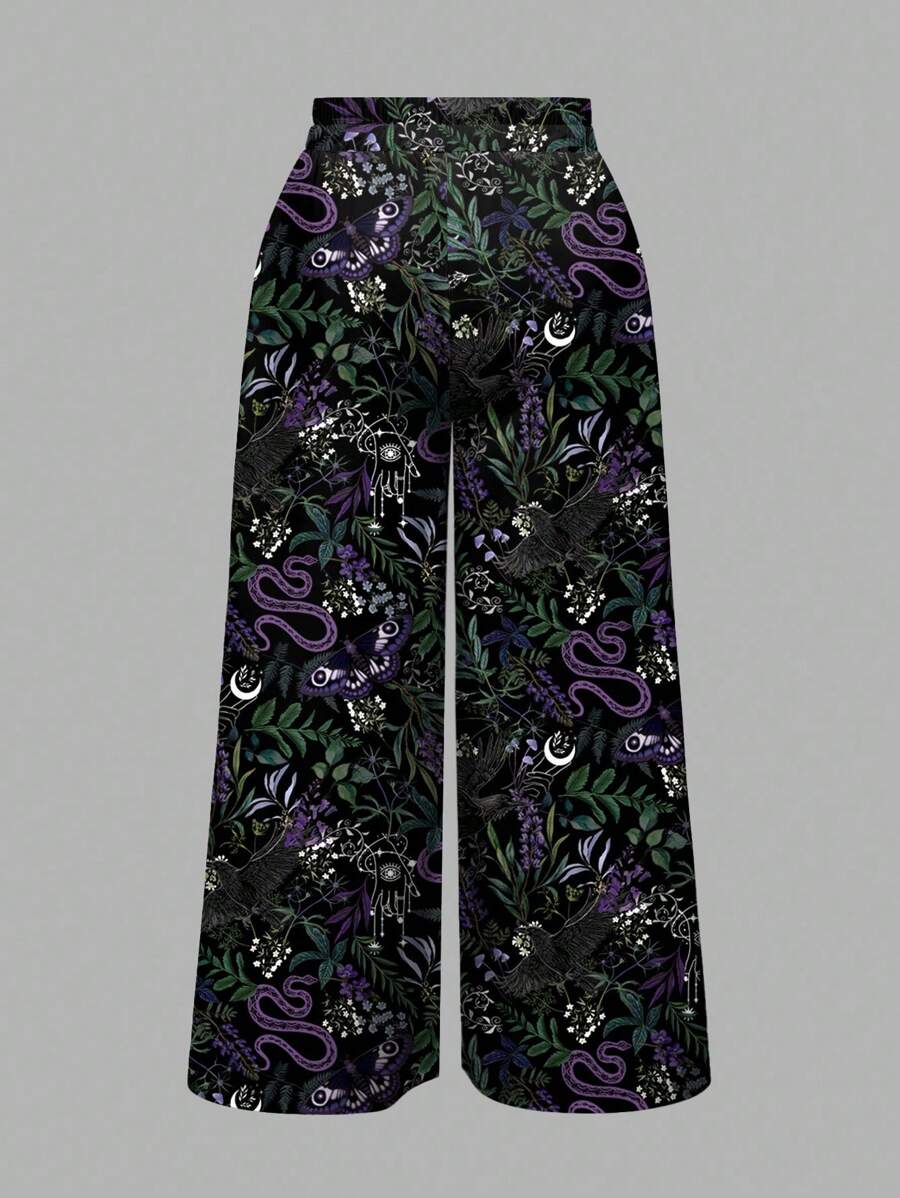Goth Plus Size Women Gothic Goth Snake, Plant, Star, Moon Print Mysterious Dark Pants Suitable For Going Out