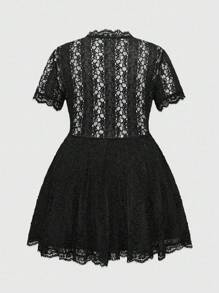 Plus Size Women Gothic Moon Embroidered Lace Mini Dress