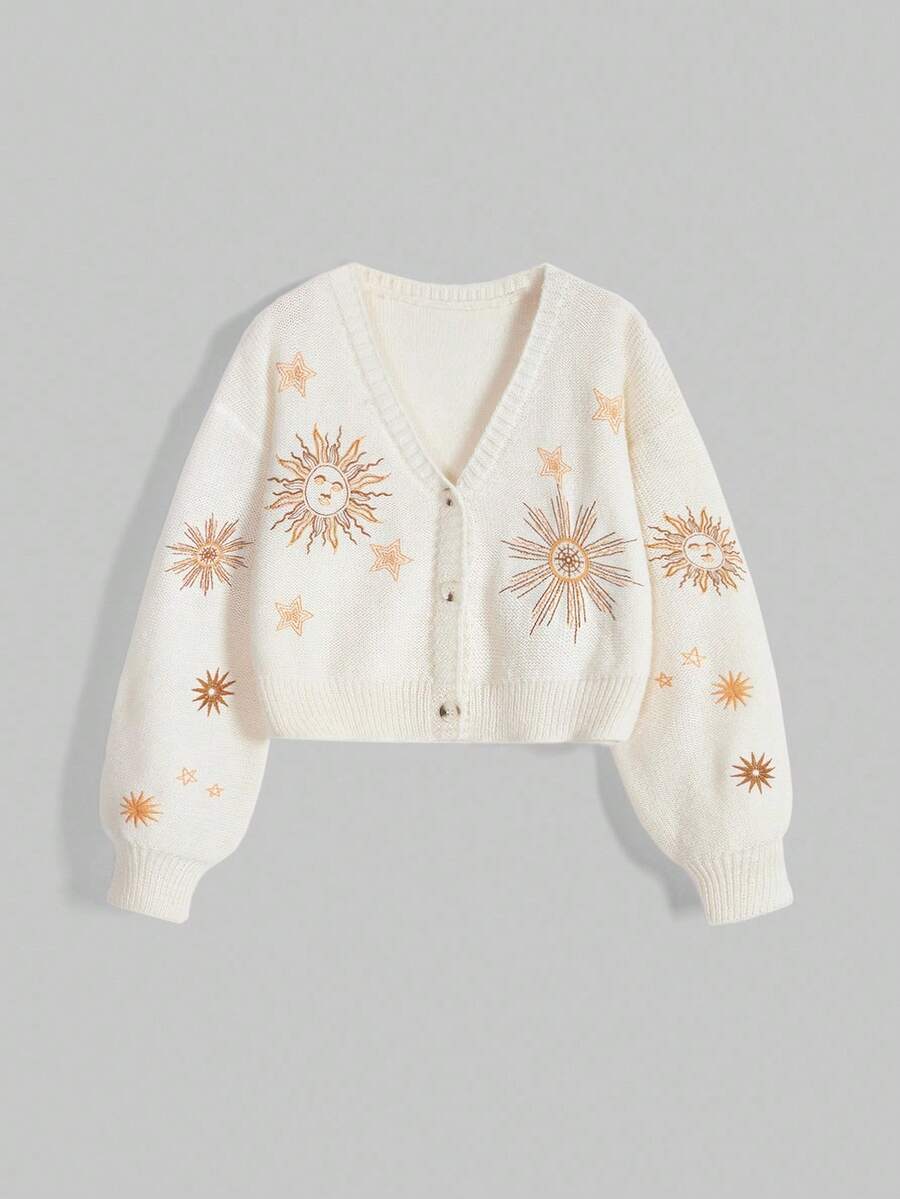 Hippie Plus Size Women Mysterious Date Witch Style Sun & Moon Embroidery Cardigan Sweater