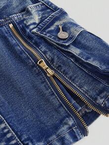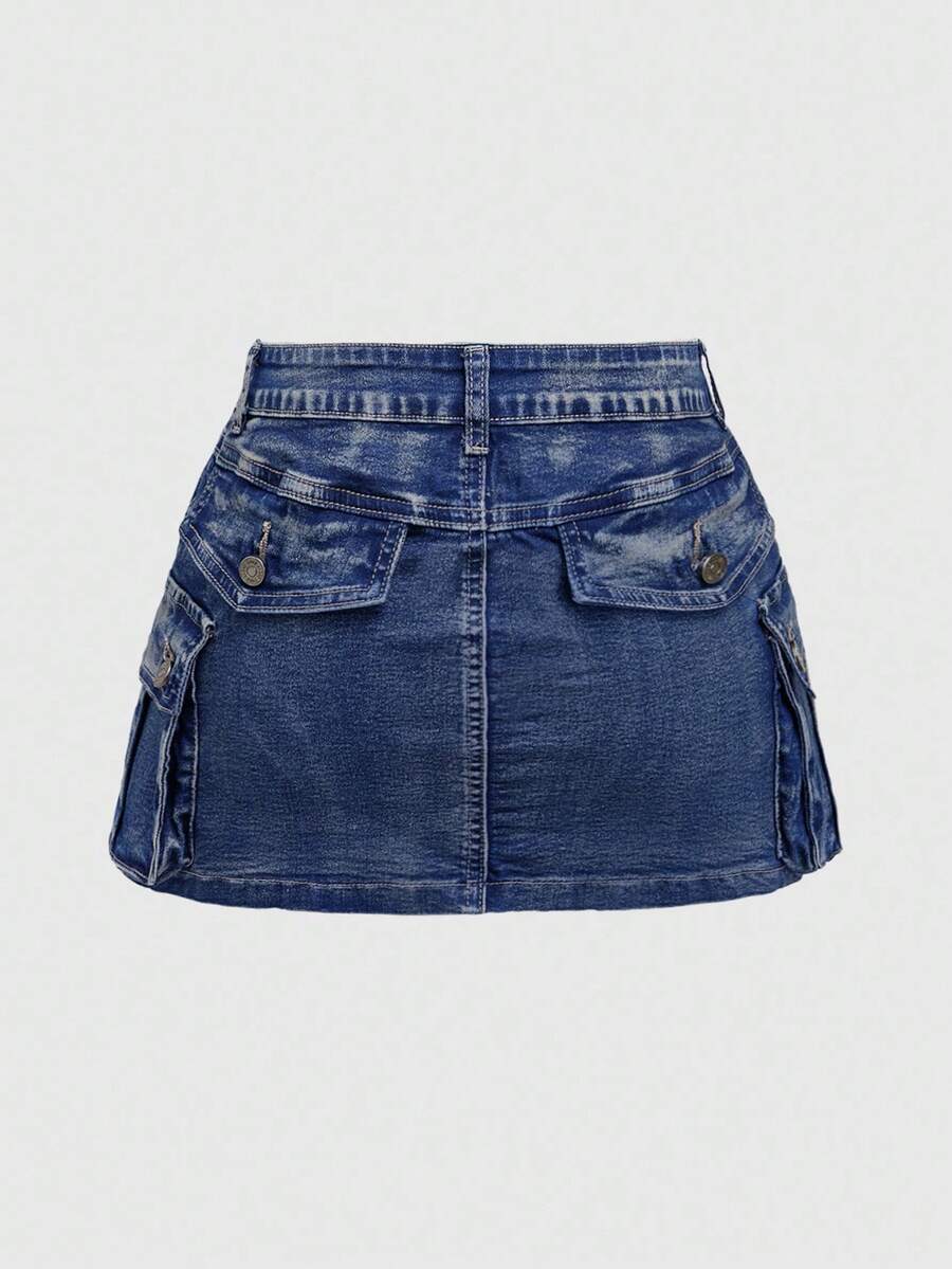 Kawaii Plus Size Kpop Y2K Millennium Zip-Up Vintage Washed Low-Waist Mini Denim Skirt, Casual Autumn/Winter Women Denim Skirt