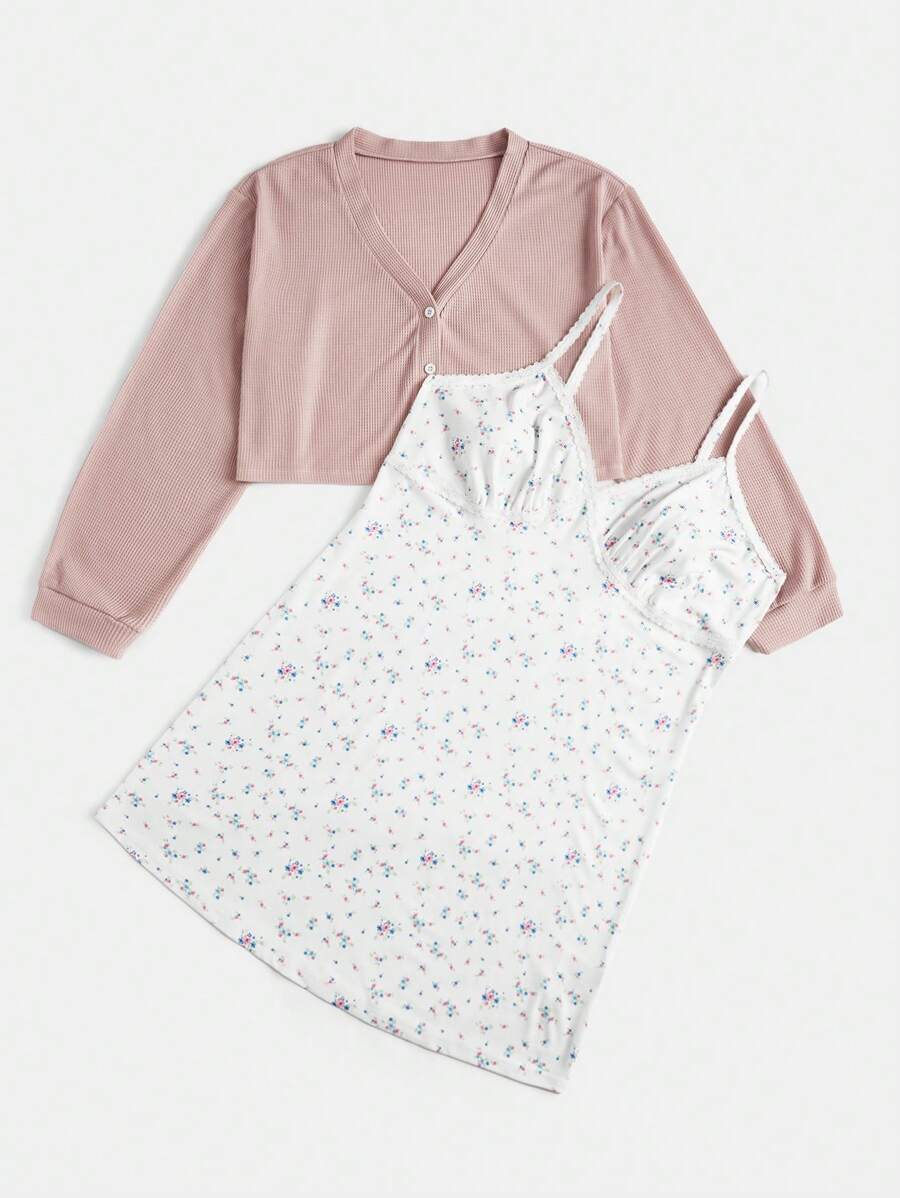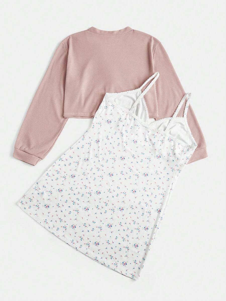 Kawaii Plus Solid Tee & Ditsy Floral Cami Dress